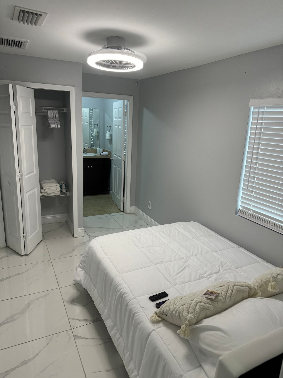 COMPLETE REMODEL Feb 2025-1 Bedroom with King bed & 1 twin bed! Bathroom connect to bedroom. Only 1 mile to beautiful Vanderbilt beach, Perfect for couples,small family. Small fenced area for fur babies. Only min from Mercato dining & entertainment, WholeFoods,Trader Joes, Delnor Wiggins Beach. Kitchen with all necessities. Safe,quiet area of Naples.Pack&Play provided. Towels & essentials provided. WIFI, ROKU smart TV, comfy sofa for TV watching. Bikes, lawn chairs, beach supplies, washer/dryer.