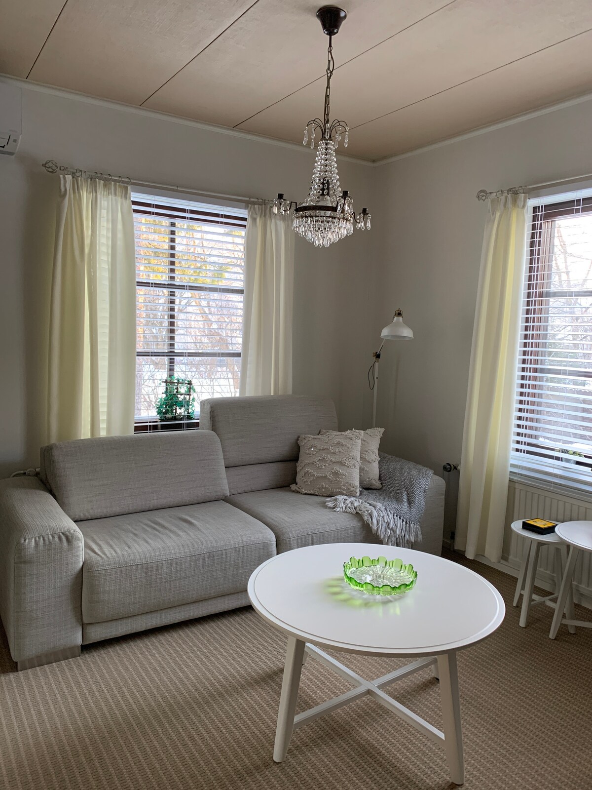Jednosoban stan na drugom spratu na kraju samostalne kuće. Na vratima je kodna brava. Objekt se nalazi na sjevernoj strani Oulua uz autoput u blizini Ideaparka Oulu. Stan ima bračni krevet i kauč na razvlačenje Karup dizajn (veličine 140x200). Kuhinja je dobro opremljena, npr. indukcijska ploča za kuhanje i integrirana mašina za pranje sudova, frižider i zamrzivač. Aparat za kafu, kuhalo za vodu i mikrovalna pećnica nalaze se u ormariću za doručak. Perilica rublja u kupatilu. Besplatan parking.