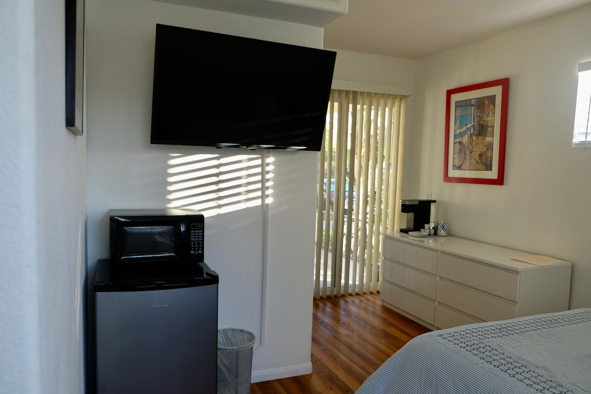 Veliki studio s udobnim bračnim krevetom Murphy, ljubavnim sjedalom, privatnim ulazom i privatnim kupatilom. Nalazi se u Cortez Hillu - prošetajte do najljepših kvartova u centru grada kao što su Little Italy, Gaslamp, East Village i Embarcadero. Nema pune kuhinje, ali postoji mali frižider, mala mikrovalna pećnica i lonac za grijanje vode. Ovo je idealan prostor za solo putnike, parove, događaje u Kongresnom centru, Padres igre, sjajne restorane i najbolje od centra San Diega.