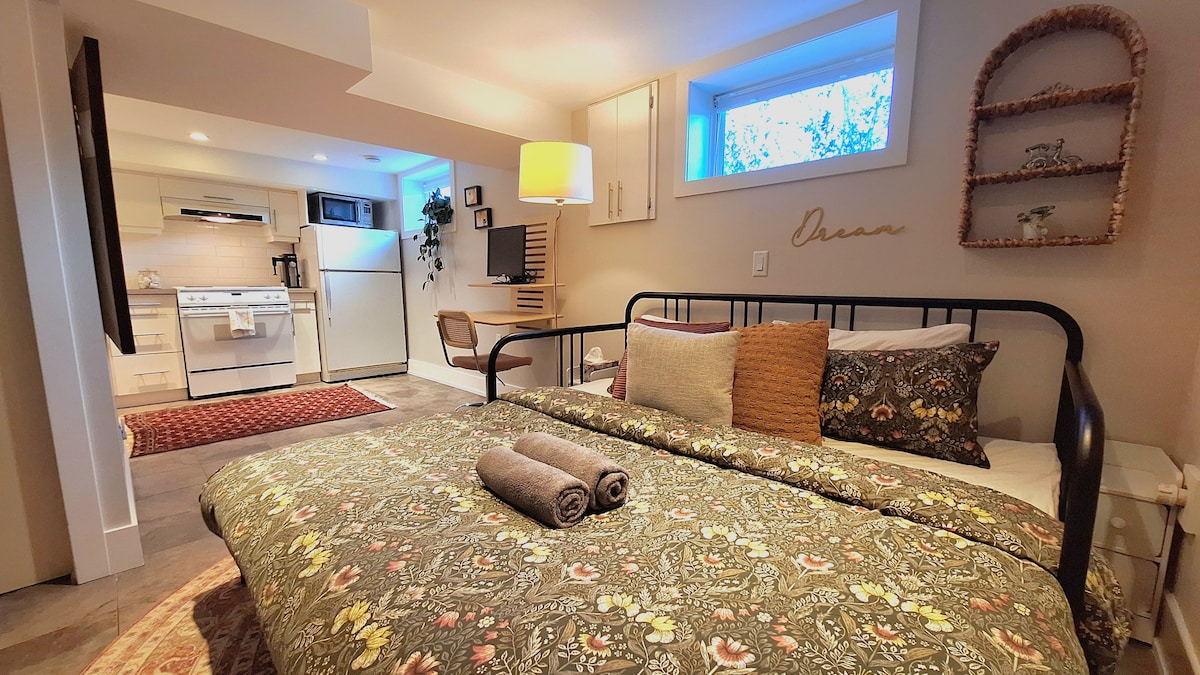 ☆ Private 1BR Suite ♥ Full Kitchen Laundry FP Wifi