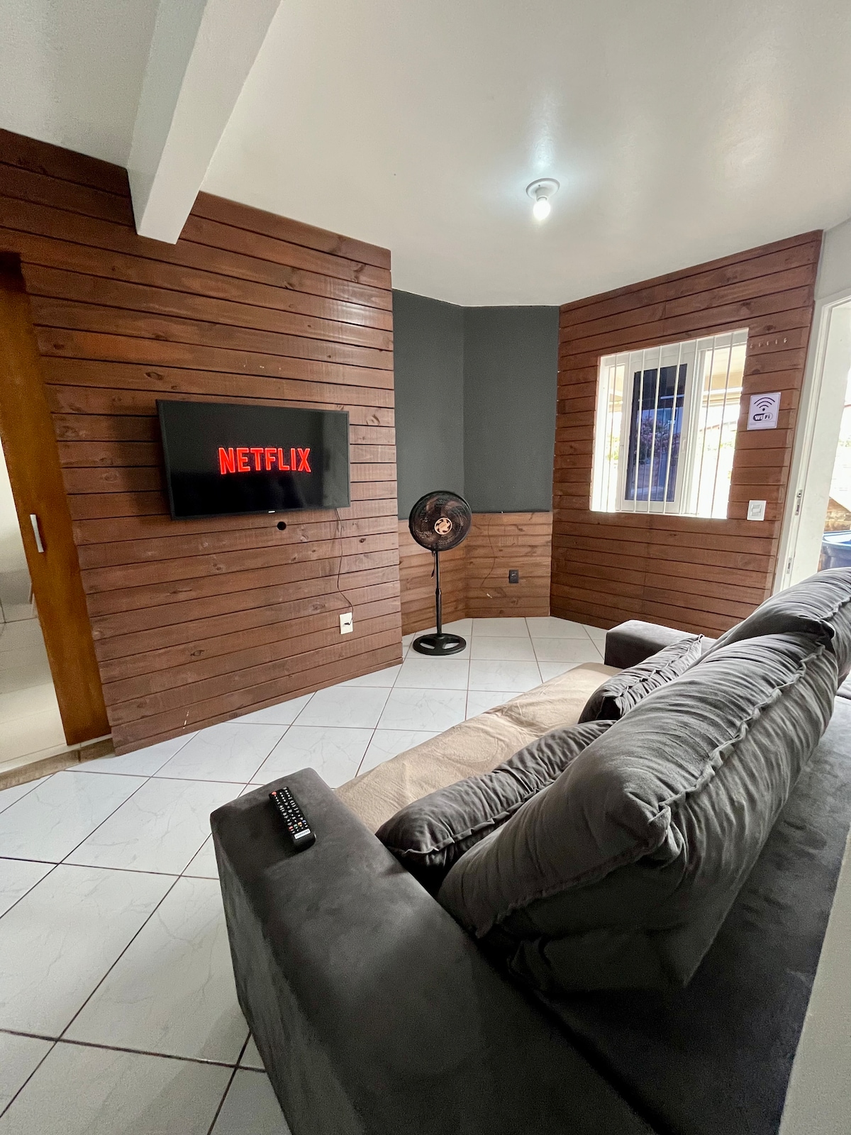 Prigrlite jednostavnost u ovom mirnom, dobro smještenom mjestu, 5 minuta od centra Novog Hamburga i BR116. Kuća otvorenog koncepta koja ima spavaću sobu s bračnim krevetom, ormarom, toplim i hladnim zrakom 18 hiljada BTU za cijelu kuću, dnevni boravak s kaučem na razvlačenje, pametni TV (Roku), Wi-Fi, potpuno opremljenu kuhinju s frižiderom, štednjakom, mikrovalnom pećnicom, aparatom za kafu, električnim čajnikom, kuhinjskim priborom, perilicom i sušilicom, potpuno opremljenim kupatilom, sušilom za kosu, vanjskim prostorom s terasom s travnjakom i otvorenom garažom za automobil.