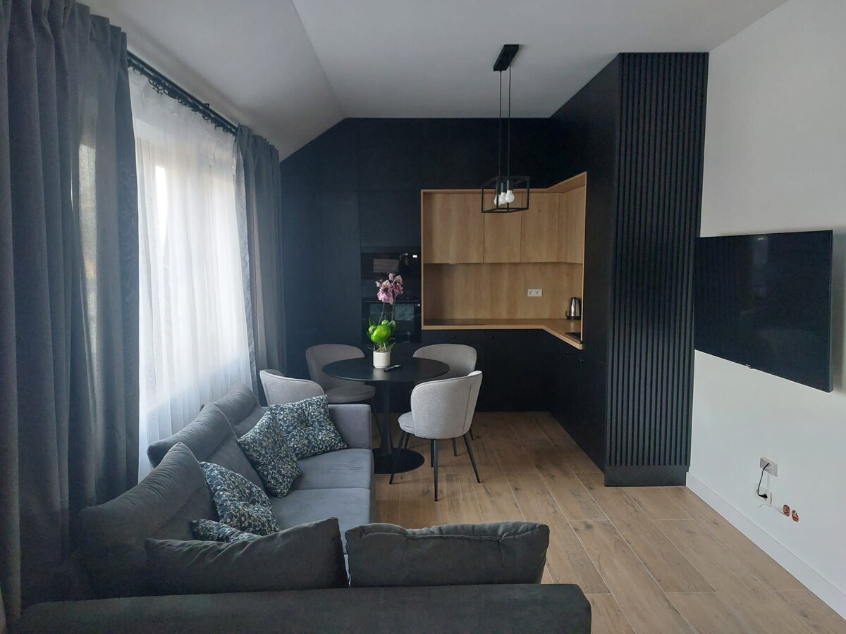 Moderan, udobno namješten i sveobuhvatno opremljen stan od 46 metara koji se nalazi u čuvanom, mirnom stambenom objektu, s vlastitim parking mjestom u podzemnoj garaži. Svijetla spavaća soba s bračnim krevetom, kuhinja opremljena mašinom za suđe, mikrovalnom pećnicom, tosterom i aparatom za kafu. Svježa kafa, pijana u prostranom vrtu samo je jedna od mnogih stvari koje će vaš boravak učiniti ugodnijim. Brzi Wi-Fi, kablovska TV ili kućni kino pružit će vam zabavu nakon opuštajućeg kupatila.
