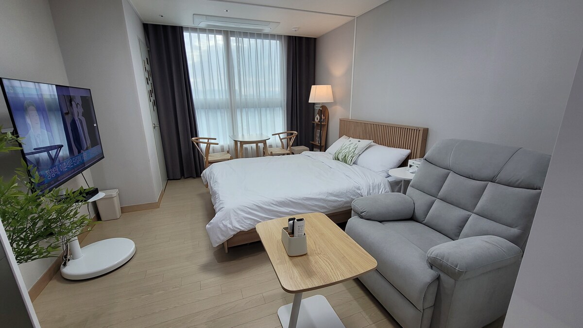 WECO STAY Chungmuro je smješten u kvartu s trendovskom, retro atmosferom Euljira. Prostor spaja elegantan i udoban dizajn, nudeći mir i karakter. To je također odlično područje za istraživanje pješice, sa šarmantnim, vremenski iscrpljenim uličicama. - U blizini najboljih mjesta u Seulu kao što su Myeongdong, Euljiro, Namsan i Dongdaemun - 3 minute hoda od stanice Chungmuro, izlaz 7 (linije 3 i 4) - Od aerodroma, idite autobusom 6001 do stanice Chungmuro, izlaz 2 (6 minuta hoda)