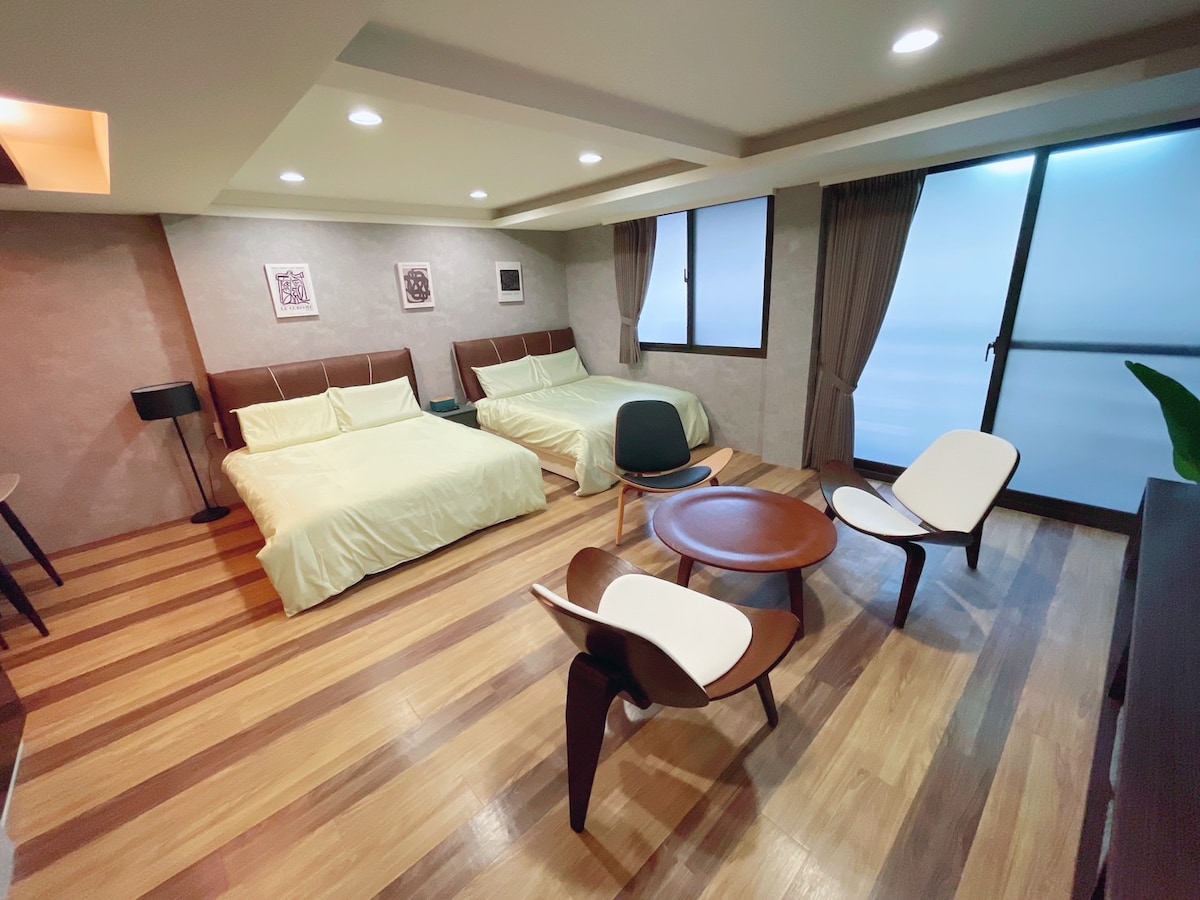 Nalazi se u Kelung Cityju 900 metara do noćne pijace Templekou, 1,3 km od željezničke stanice Keelung 1,3 km do Ocean Plaze, 5,8 km do ribarske luke Batuzi 6,9 km do Nacionalnog muzeja pomorske nauke i tehnologije U blizini su popularna mjesta kao što su Kulturni centar Keelong i Muzej morske kulture i umjetnosti Yangming. Sve sobe su opremljene kablovskom TV od 50 inča s privatnim kupatilima u svakoj sobi. Obezbijeđeni su odvojeni sadržaji za tuširanje i papuče, kao i besplatne toaletne potrepštine i sušilo za kosu. Smještaj s klima-uređajem, jednostavnom kuhinjom, frižiderom, frižiderom, indukcijskim štednjakom Wi-Fi je besplatan za naše goste.
