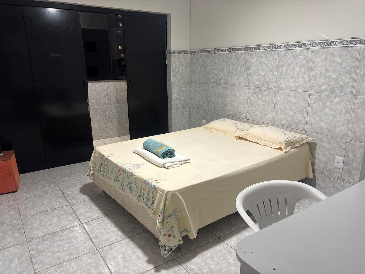ATTENTION: FAMILY ENVIRONMENT, NO PARTIES, EVENTS, SOUND, OR LOUD NOISES Pets: Welcome Swimming pool, solar heating (28º to 31º), Bedroom 114 of Recanto das Emas - Brasília-DF For relaxation, accommodation for up to 4 people (in the same room) + 4 guests Check-in from 11:00 AM (negotiable) Check-out until 4:00 PM (negotiable) Swimming pool Wi-Fi Full kitchen Towels and bed linens Barbecue grill and barbecue items Cleaning supplies 1 bedroom with air conditioning YouTube Premium and Netflix
