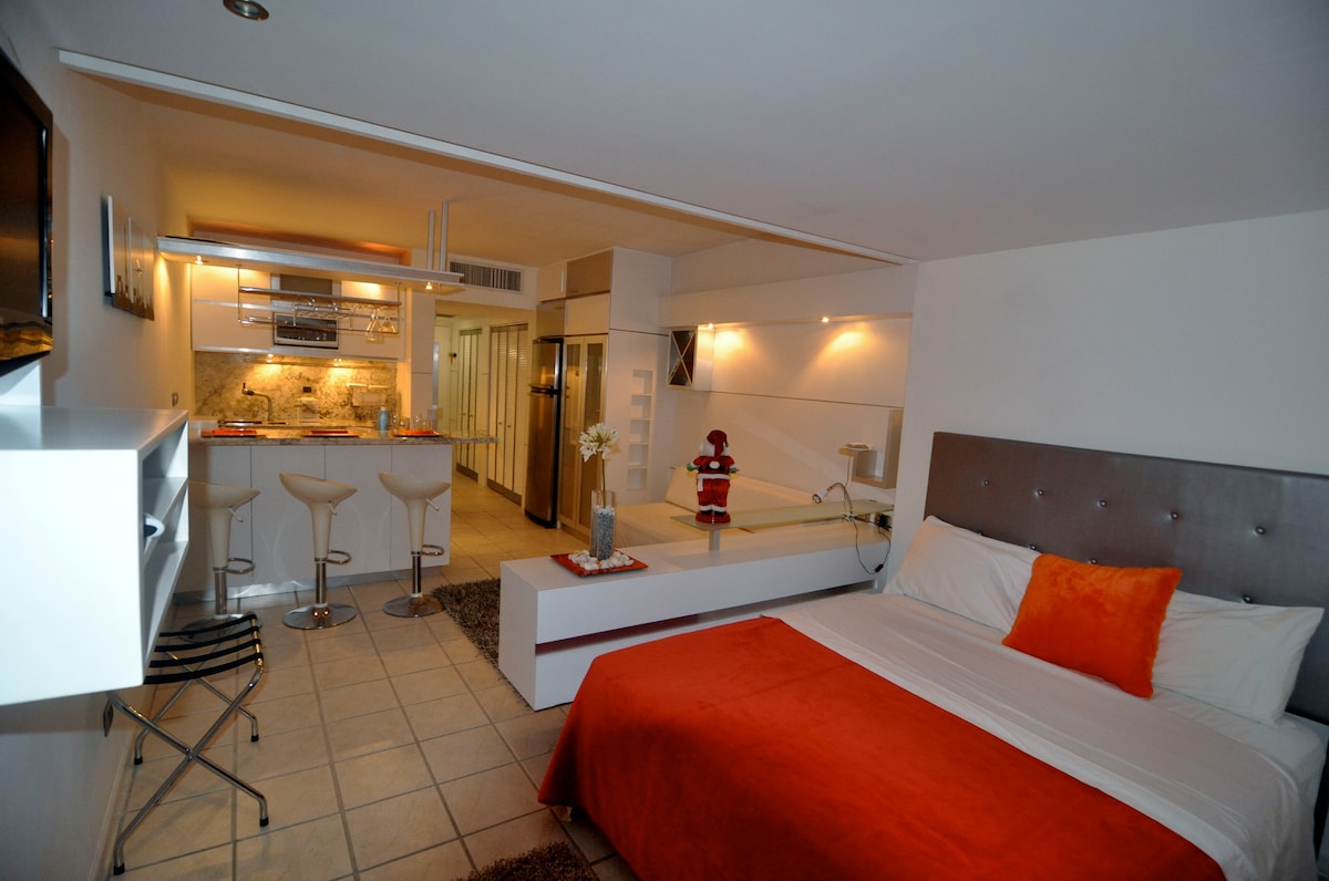 Ubicado en una zona privilegiada de la isla, a tan solo 5 minutos del C.C La Vela y playa . Este apartamento de una habitación en la isla de Margarita es un espacio diseñado para ofrecer tranquilidad, lujo y armonía, ideal para parejas que buscan una experiencia romántica en un entorno íntimo y confortable, en una zona serena de la isla.