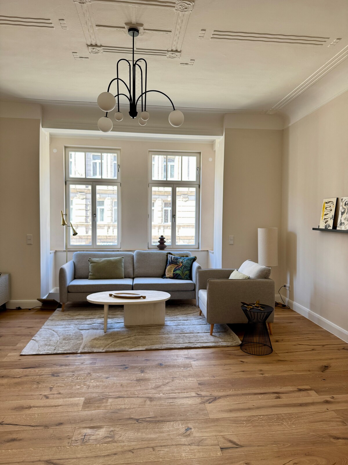 Genieße ein stilvolles Erlebnis in dieser zentral gelegenen Unterkunft. Ideal für Kollegen, Freundesgruppen und Familien. Diese großzügige Wohnung bietet drei geräumige Schlafzimmer mit Doppelbetten, die auch in jeweils als Einzelbetten aufgestellt werden können. Zusätzlich gibt es eine voll ausgestattete Küche mit Essplatz, ein großes Badezimmer mit begehbarer Dusche, großem Waschbecken, WC sowie Waschmaschine und Trockner. Wunderschöne, lichtdurchflutete Altbauräume.