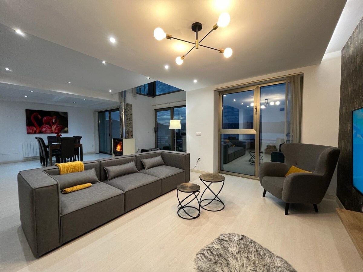 Brvnare u O Barqueiru, 5 km od O Viceda, 15 km od Viveira i Ortigueire. U A Mariñi i Ortegalu. Nekoliko stepenica vas poziva da uronite u ovu vilu s panoramskim pogledom na ušće i planine, Otvoreni prostor (dnevni boravak – kuhinja – soba) s direktnim pristupom natkrivenom vanjskom jacuzziju s otvorenim prednjim i odvojenim kupatilom. Dođite i uživajte u hrani i festivalima kao što su Resurection Fest i Mundo Celta. Mjesta iz snova kao što su Fuciño do Porco, Banco de Loiba, Estaca de Bares.