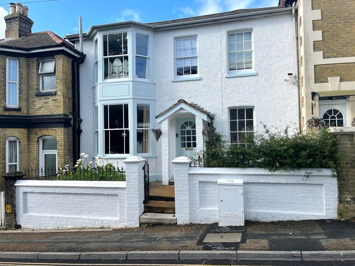 Prostran stan s karakteristikama perioda. Prekrasan dnevni boravak s 2 kauča, prozorom u zaljevu s pogledom na more. 55" Sky Glass TV, velika spavaća soba s mirnim pogledom na stražnji vrt. Dvokrevetni krevet i 1 sklopivi krevet s odgovarajućim madracem. Kupatilo s električnim tušem iznad kade. Svijetla kuhinja s dvostrukim vratima na podignutu terasu, savršena za jutarnju kafu i stepenice do velikog privatnog zatvorenog vrta. Dozvole za parkiranje su predviđene za parkiranje na ulici