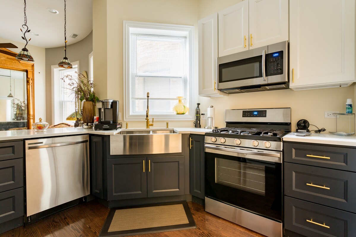 Prekrasan dvosoban stan na gornjem spratu s 2 kupatila u srcu Bronzevillea! S visokim plafonima i tonama prirodnog svjetla. Potpuno opremljena kuhinja ima sve što vam je potrebno za pripremu ukusnog obroka ili možete uživati u jednoj od mnogih odličnih restorana u blizini. 🌊Prošetajte 15 minuta do obale jezera i Oakwood Beacha. Nalazi se u centru grada u blizini: • Centar Chicaga • Soldier Field & Guaranteed Rate Field • Field Museum & Art Institute • Kineska četvrt, Hyde Park i Pilsen • I još mnogo toga!