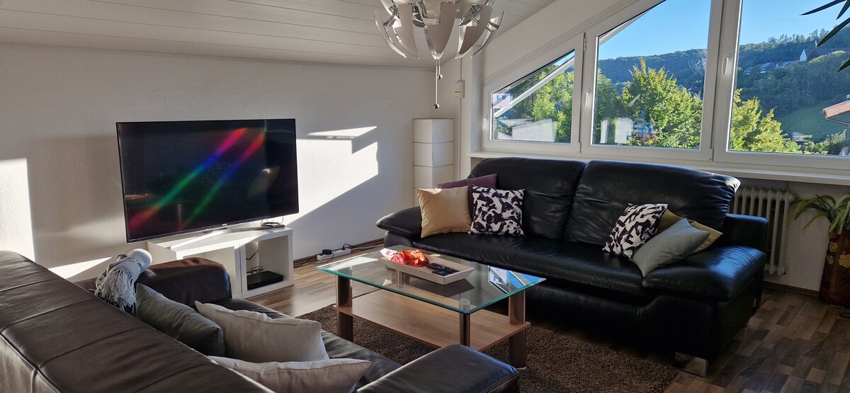 Veliki stan na periferiji sa veličanstvenim pogledom na unutrašnjost. Smješten direktno na Wutachtalradwegu u južnoj crnoj šumi, postoje savršeni uslovi za male šetnje i ugodne sate ispred švedske pećnice. U neposrednoj blizini ćete pronaći sve što vam srce poželi u neposrednoj blizini, od malog kafića do supermarketa. Obližnja odredišta za izlete: Rhine Falls Schaffhausen (25 minuta) Wutach Gorge (30 minuta).), Zurich Airport (40 min.), stari grad Waldshut (20 min.).
