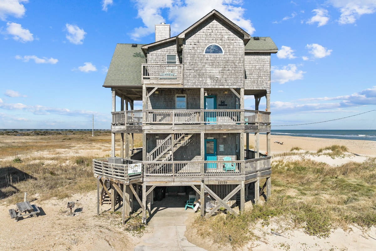 Welcome to Casa Del Mare! A stunning oceanfront Outer Banks beauty with breathtaking views of the Atlantic Ocean and Frisco Bay. Dolphins, birds, fishing boats and spectacular sunrises and sunsets are regular sights at Casa. Experience true Outer Banks island living; authentic food, wild life, surfing, fishing charters and more. Casa is fully renovated with a new private heated pool and hot tub. Casa is dog friendly. A beauty you have to see to believe.