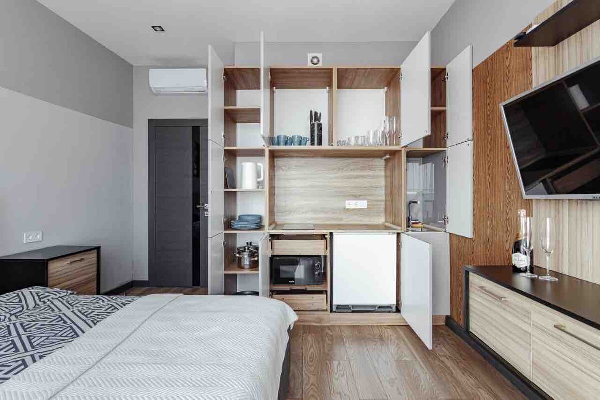 Smješten na slikovitom spustu u šarenom historijskom dvorištu Odese u blizini svih glavnih znamenitosti, parka Ševčenko i plaže Lanzheron. Opremljen modernom tehnologijom: pametni TV, zvučna traka, aparat za kafu s kapsulama, klima uređaj itd. Dizajn inspirisan japanskom estetikom Wabi-sabi. Stan se nalazi u živopisnom dvorištu u Odesi, u blizini svih znamenitosti, parka i plaže. Opremljen modernom tehnologijom: Smart TV, soundbar, aparat za kafu, klima uređaj itd. Dizajn u japanskoj estetici wabi-sabi.