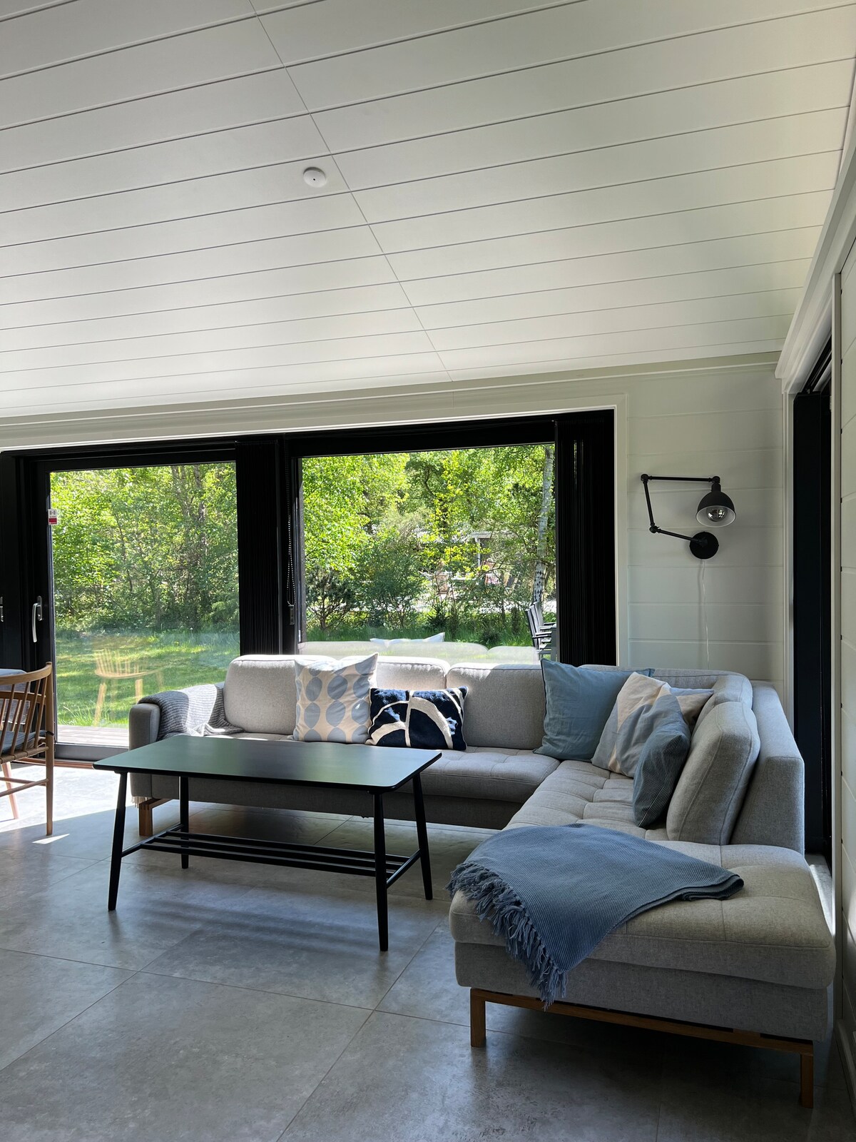 Nedavno renovirana vikend kuća od 131 m2, na malom zatvorenom makadamskom putu u mirnom području vikend kuća. Veliko, skoro potpuno ograđeno, neometano zemljište sa suncem cijeli dan. Mogućnost igranja lopte, kroket itd. Kuća ima divan veliki dnevni boravak s puno svjetla i izlazom na dvorište. Dnevni boravak je direktno povezan s blagovaonicom i kuhinjom. Ovdje ima mjesta za sve, bez obzira na to da li želite složiti slagalicu ili čitati, igrati se ili gledati TV. Dvije sobe imaju vlastiti hodnik s kliznim vratima prema dvorištu.