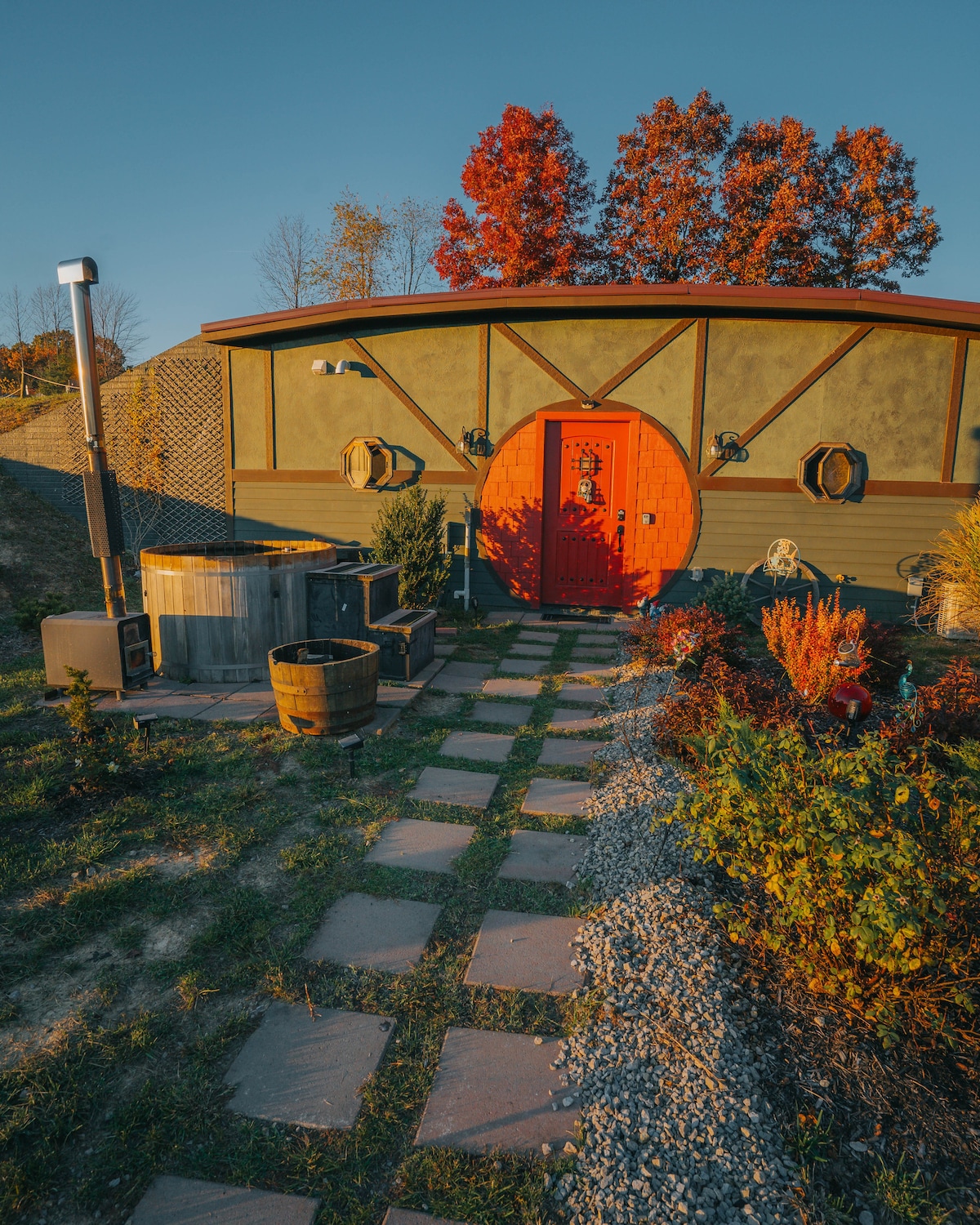 Zamislite... vaš vlastiti hobit inspirisan čarobnim bajkovitim smještajem s panoramskim pogledom na prirodu. Prikladno za kućne ljubimce. 5 kilometara od državnog parka Hocking Hills Ash Cave. Sva ljepota, priroda i neobičan šarm. Pod saune na licu mjesta se raspitajte o vašoj besplatnoj sesiji saune. Luksuzni bračni krevet, unutrašnji kamin, kupatilo s nevjerovatnom završnom obradom i luksuznom tuš kabinom, potpuno opremljena kuhinja. Masažna kada, roštilj, ognjište u sklopu objekta. Kratka vožnja do Ash Cavea, Cedar Fallsa, Old Man 's Cave, vinarije, aktivnosti na otvorenom itd.