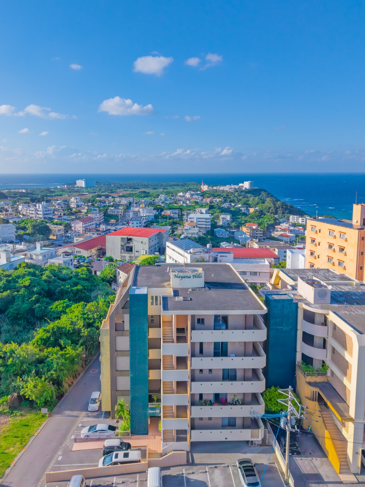Stan od 66 kvadratnih metara s panoramskim pogledom na okean. Možete šetati ili ići automobilima za razgledanje do akvarijuma i dalje do Smaragdne plaže kroz park. 30 sekundi hoda do trgovačkog centra sa Starbucksom, itd., 3 minute hoda do autobuske stanice od aerodroma. 5 minuta hoda do porodičnog Mart-a. 1 km do lokalne plaže. (Čak i kraće, ako koristite prečicu) Više ne obezbjeđujemo začine. ¥ Crna boja ili etiketa u kupatilu nije plijesan, već spojevi pločica.