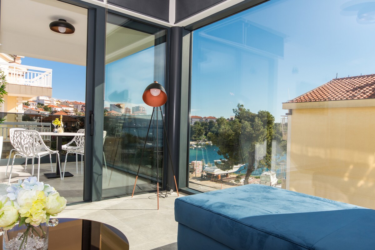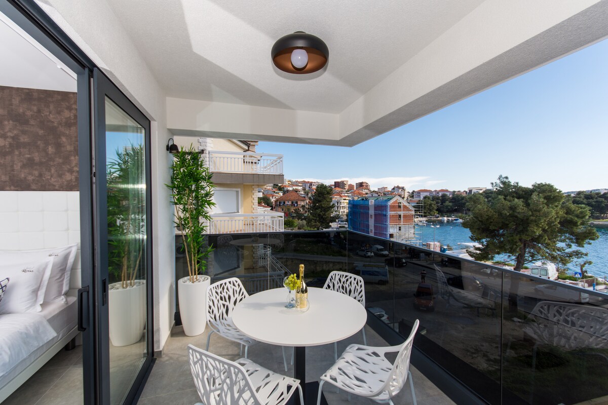Luxurious 4 star apartments Prestige are located in Trogir on island Čiovo, just 1 km away from the UNESCO protected Trogir center and only 20 m from the sea. Villa Prestige perfectly designs to give our guests a sense of being in a small luxurious resort. The house consists of 4 luxurious apartments Prestige and 2 luxurious penthouse apartments Prestige Deluxe.