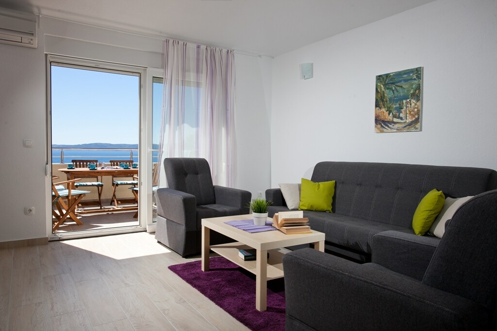 Apartman se nalazi na otoku Čiovu, grad Trogir. Udaljen 300m od plaže Mavarštica, Bočic plaža 550m, gradska plaža Copacabana nalazi se na 700m. Mirno okruženje. Komforan, nov i luksuzan apartman, svaka prostorija sadrži klima uređaj, dobro opremljenu kuhinju, tv ravnog ekrana, dnevni boravak s komfornim kaučom, sušilom za kosu i besplatnim kozmetičkim priborom. Objekat ima perlicu posuđa, hladnjak, pećnicu, kuhalo za vodu, aparat za kavu, toster. Sušilica se nalazi u prostoriji izvan kuće.