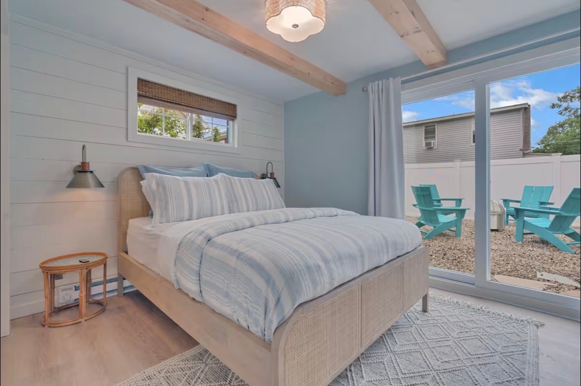 3 night Min. stay 6/1 to Labor Day. Cottage #3 is a one-bedroom (king bed) recently renovated well-appointed with comfortable furnishings and updated finishes. It is outfitted with modern decor. The cottage has a fully stocked kitchen with pots and pans and utensils for those times when you may just want to stay in and cook. Full size washer dryer. A private fenced patio with a gas grill, table and chairs. Just a short 5-minute walk to the sandy beach. Yes we allow pets.