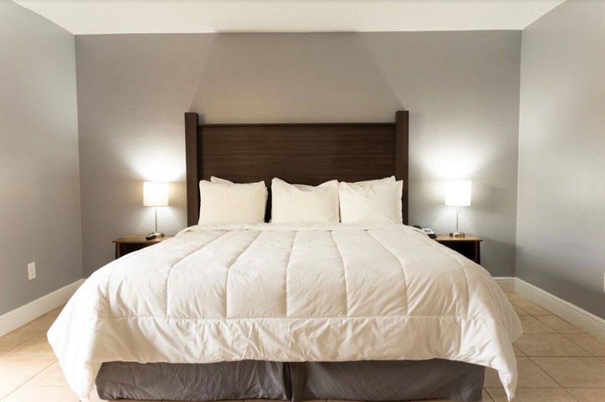 Apartman s 1 spavaćom sobom, PRIVATNIM apartmanom s kompletnom kuhinjom, uključujući sav pribor za kuhanje i 2 TV-a u ovom apartmanu. Soba uključuje 1 bračni krevet i 1 krevet pune veličine. Nudimo i odličan fitness centar i vešeraj za goste kako biste mogli prati/sušiti odjeću. Ključeve možete lako preuzeti jer je naše osoblje recepcije dostupno 24 sata dnevno i govori engleski, španski i portugalski.