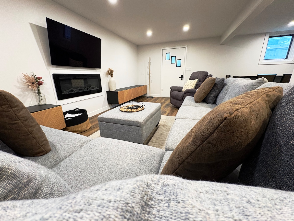 Zakoračite u privatni i udoban prostor. Opustite se gledajući TV u krevetu ili na kauč. Ovo mjesto je dio našeg podruma, tako da možete čuti svakodnevni život na spratu. Radi vaše sigurnosti, na ulazu je postavljena kamera na prstenu i osvijetlit će ulaz kad padne mrak. Parking je u dobro osvijetljenoj javnoj ulici. Jednostavno prošetajte našim posebnim Airbnb trotoarom, bez stepenica, prošetajte do stražnjeg dijela kuće. Bit ćete u mirnom prostoru zbog kojeg se osjećate kao kod kuće.