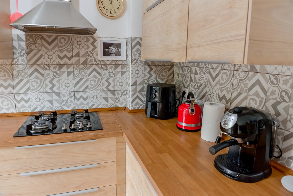 Udobno i prikladno za porodice na osunčanoj i mirnoj lokaciji samo nekoliko minuta hoda od centra grada i jezera . Veliki vrt koji se može koristiti za opuštanje i ručak s direktnim pristupom iz stana, na raspolaganju gostima su ležaljke za sunčanje na terasi s koje možete uživati u ugodnom pogledu. Na raspolaganju su vam kafa i biljni čajevi, Pogodno za parove ili poslovne putnike, ima i kauč koji se može pretvoriti u udoban dodatni bračni krevet.