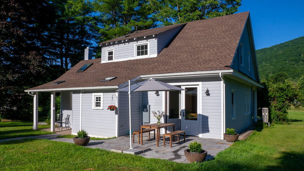 Zadivljujuće, mirno planinsko utočište s izloženim gredama, bazenom s morskom vodom, saunom, kaminom, kadama za kupanje i tušem s glavom koja imitira padanje kiše. Smješten na šumovitom brežuljku od 5 hektara, udaljen deset minuta vožnje od Woodstocka i blizu milja pješačkih staza. Prozivite na ognjištu, okrenite burgere na vrhu linije i uživajte u jednom od najboljih mjesta za promatranje zvijezda u okolini. U zatvorenom, pronađite dobro opremljenu kuhinju i TV ekran veličine kina s Netflix/Apple TV-om. Praktično za skijaške staze.