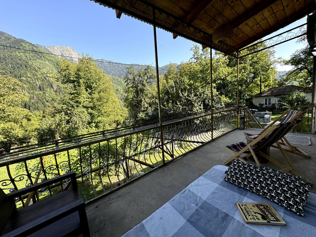Uživajte u sjajnom pogledu na Mt. Shoda i Mravaldzali na dvije terase+jedan balkon ove kuće, plivaju u rijeci Gharuli i noću gledaju u zvijezde. Probudite se sa suncem i opustite se sa porodicom i prijateljima u prirodnom okruženju sa (još) bez ljudi koji žive u blizini, ali se i dalje nalaze u blizini centra sela i Onia. Mjesto je stara teritorija Kolkhoza koja se pretvorila u privatne parcele. Svako godišnje doba ima svoj šarm i ljepotu