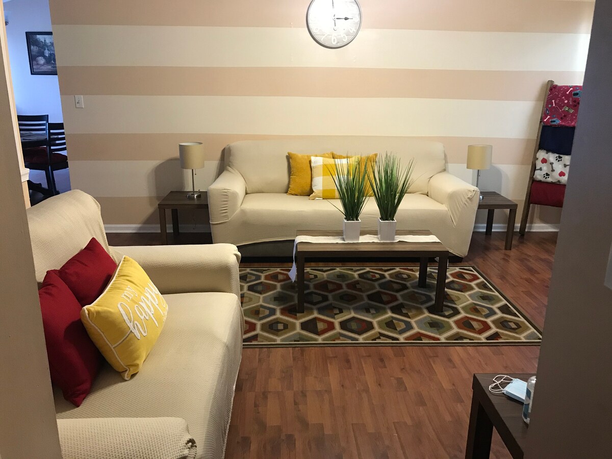 Dobro došli u Jacksonville, dom kampa Lejeune. Naša lokacija se nalazi 5 milja od srca grada. Ovo je mirna četvrt u kojoj ljudi mašu dok prolazite. Nalazi se pored puta za grane žvakaćih guma. Uživajte u ovoj kući s 3 spavaće sobe i 2 kupatila na uglu s velikom ogradom u dvorištu i novom terasom. Udaljeni smo 1,5 milju od supermarketa, benzinskih stanica i restorana brze hrane. Predmeti prikladni za bebe uključuju stolicu za hranjenje i kolica. Uživajte u selu u malom velikom gradu Jacksonvilleu.