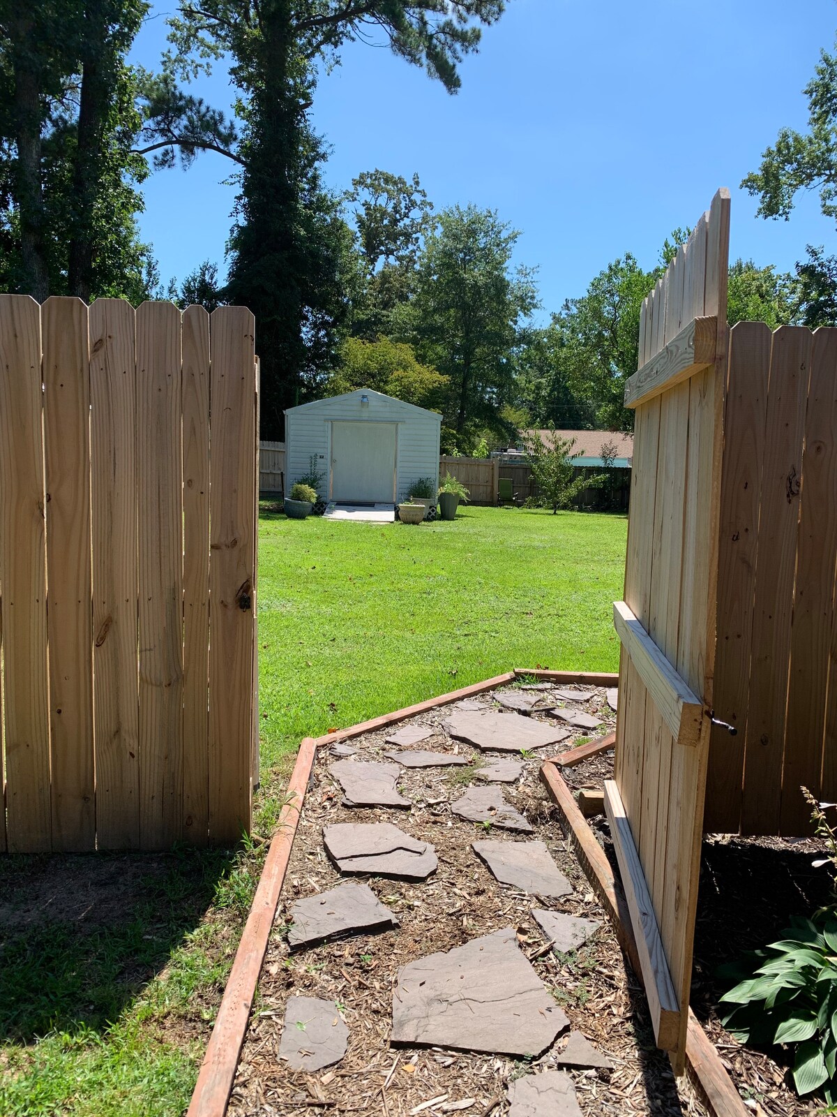 Virginia’s Country Cottage, a charming guest house constructed in 2020, nestled on 40 acres behind our residence. Enjoy your own private yard and relax on the new outdoor patio featuring a gas fire pit. This 950-square-foot retreat offers tranquility in a secluded setting while still being close to Western Blvd. Nearby amenities include restaurants, grocery stores, a movie theater, mall, and Walmart, making it an ideal spot for those visiting cities surrounding onslow county.