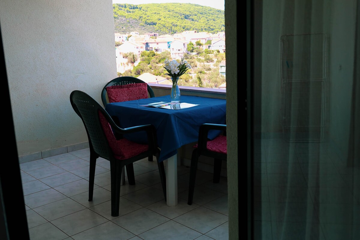 Ako ste u potrazi za istinskim doživljajem otoka i ponovno veselim ljetom, na pravom ste mjestu! Nudimo vam odmor s pogledom koji oduzima dah, zapanjujućim skrivenim plažama i toplim ljetnim noćima. Svakako vam preporučujemo da obiđete naš privatni brod kako biste osjetili pravi otočki duh! Naš kompleks ima šest odvojenih stanova. Od ove godine nudimo vam naš bazen sa prekrasnim dvorištem! Svaki apartman ima svoj balkon, komfornu sobu, dnevni boravak sa sofom/krevetom, kuhinju i kupatilo!