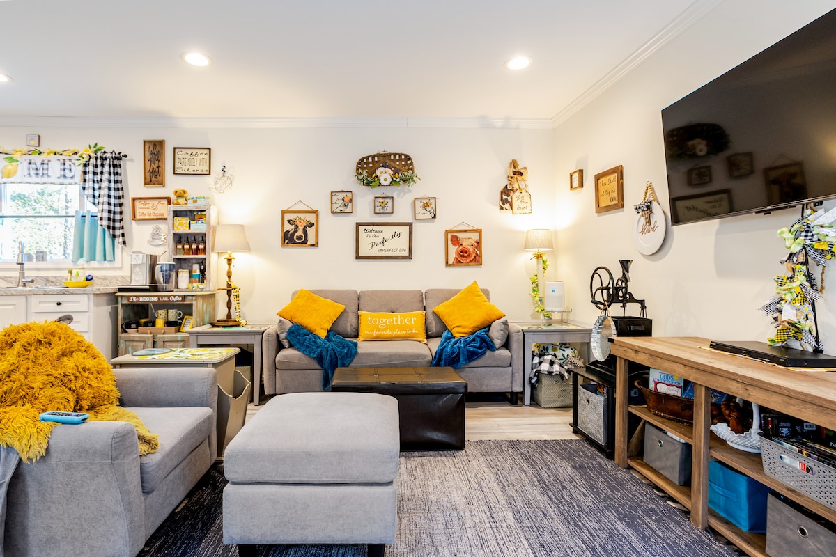 Uživajte u šoljici kafe opuštajući se u ljuljački na prednjoj terasi ili sjedite na stražnjoj terasi okrenute prema šumi i gledanju pilića kako kljucaju za hranom. Ili prošetajte stazom i pregledajte vinu od muscadine/scuppernong i uživajte u raskošnom grožđu i smokvama u sezoni. Uživajte u seoskom životu na 2 i po hektara.