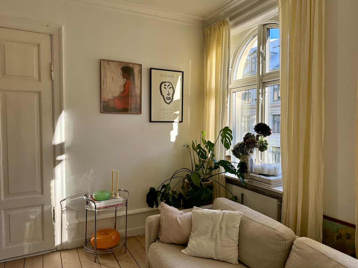 A family home located on a safe and quiet side-street off Frederiksberg Allé, a 2min walk from the Metro Station. The neighbourhood is one of the best in Copenhagen, leafy and quiet yet with plenty of cafes, bars and restaurants within walking distance. There's direct access to a patio and garden from the kitchen, with a table and chairs, warmed when the sun is shining!
