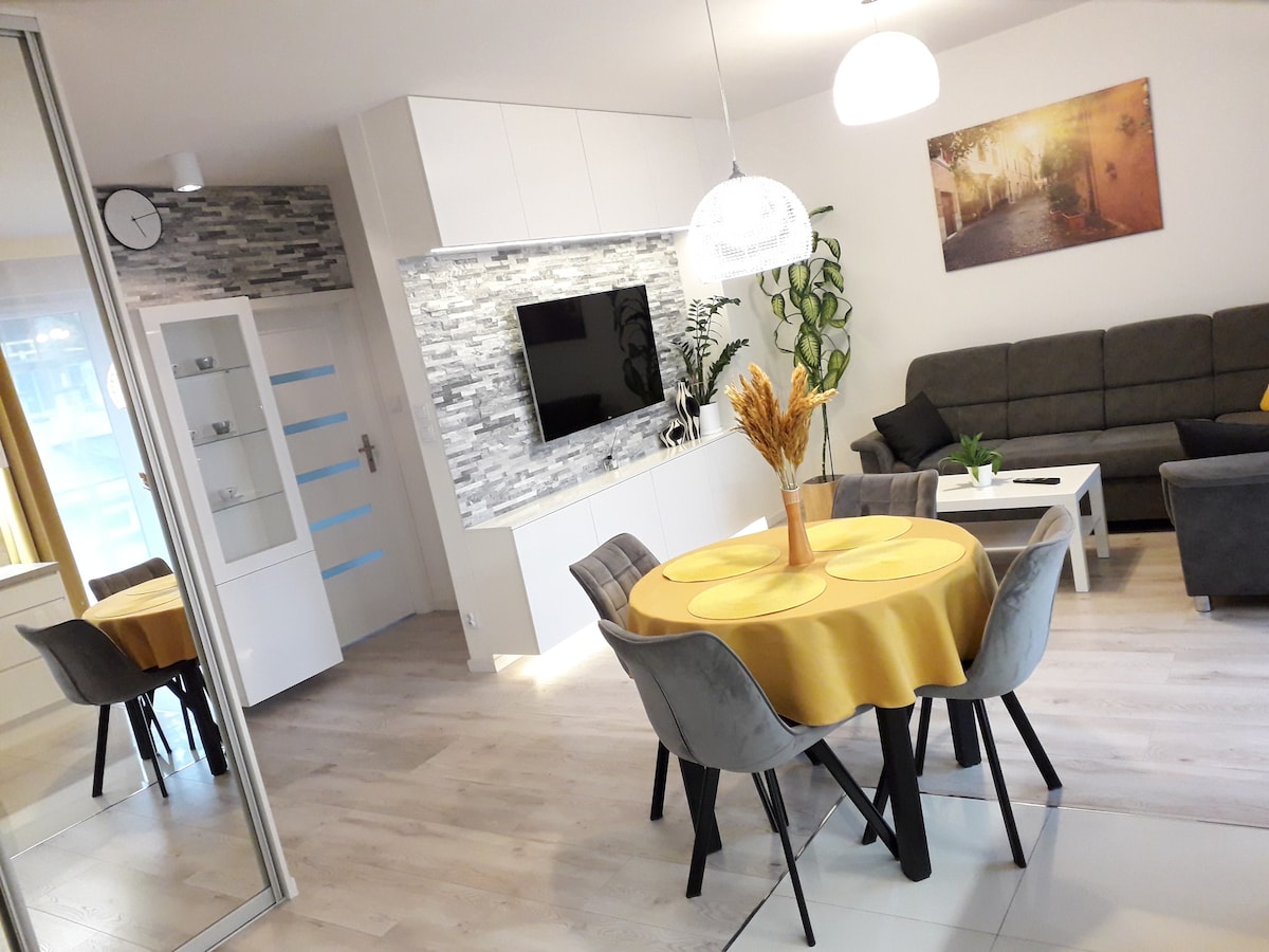 Svijetli, dvospratni stan dizajniran u skandinavskom stilu, potpuno opremljen sa svime što vam je potrebno za boravak. Stan se nalazi u centru Lodza, samo nekoliko minuta od ulice Piotrkowska u starom, ali nedavno obnovljenom kondominiju. TV s Netflixom, Wi-Fi, klima-uređaj i veliki ormar su velike prednosti. Ovdje ćete se osjećati kao kod kuće i odmarati se nakon cjelodnevnih avantura u Lodzu.