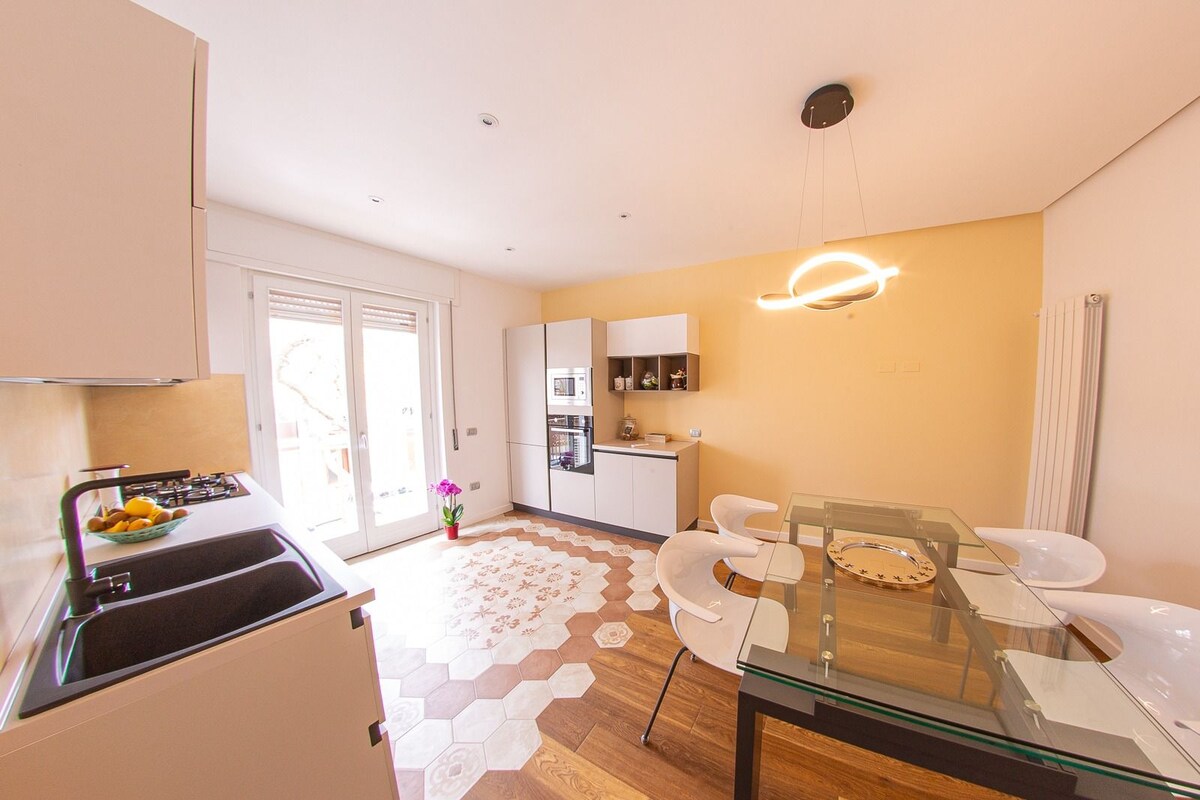 Nalazi se na strateškoj poziciji 40 metara od plaže Lido, od biciklističke staze nekoliko koraka od historijskog centra. Zvučno izolirani smještaj,idealan za 4 osobe, sastoji se od spavaće sobe s bračnim krevetom, spavaće sobe, kupatila, dnevne sobe s kaučem na razvlačenje, kuhinje i velike terase. Naći ćete svu udobnost: klimu u svakoj sobi, mašinu za pranje veša, aparat za kafu, posuđe, mikrovalnu pećnicu, posteljinu, peškire, sušilo za kosu, Wi-Fi i dječji krevetić. Uključeno je veliko privatno parking mjesto!