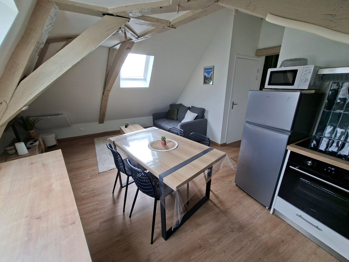 Topao i šarmantan stan u potkrovlju, pažljivo uređen i idealno smješten u srcu Ortheza. Dvije odvojene spavaće sobe s bračnim krevetima (160–179 cm), udoban dnevni boravak i potpuno opremljena kuhinja za udoban boravak, bilo da putujete s porodicom ili poslovno. Nalazi se na 3. spratu bez lifta, s nekim područjima niže visine stropa. Tražite ugodan, centralan i dobro opremljen smještaj? Pronašli ste ga.