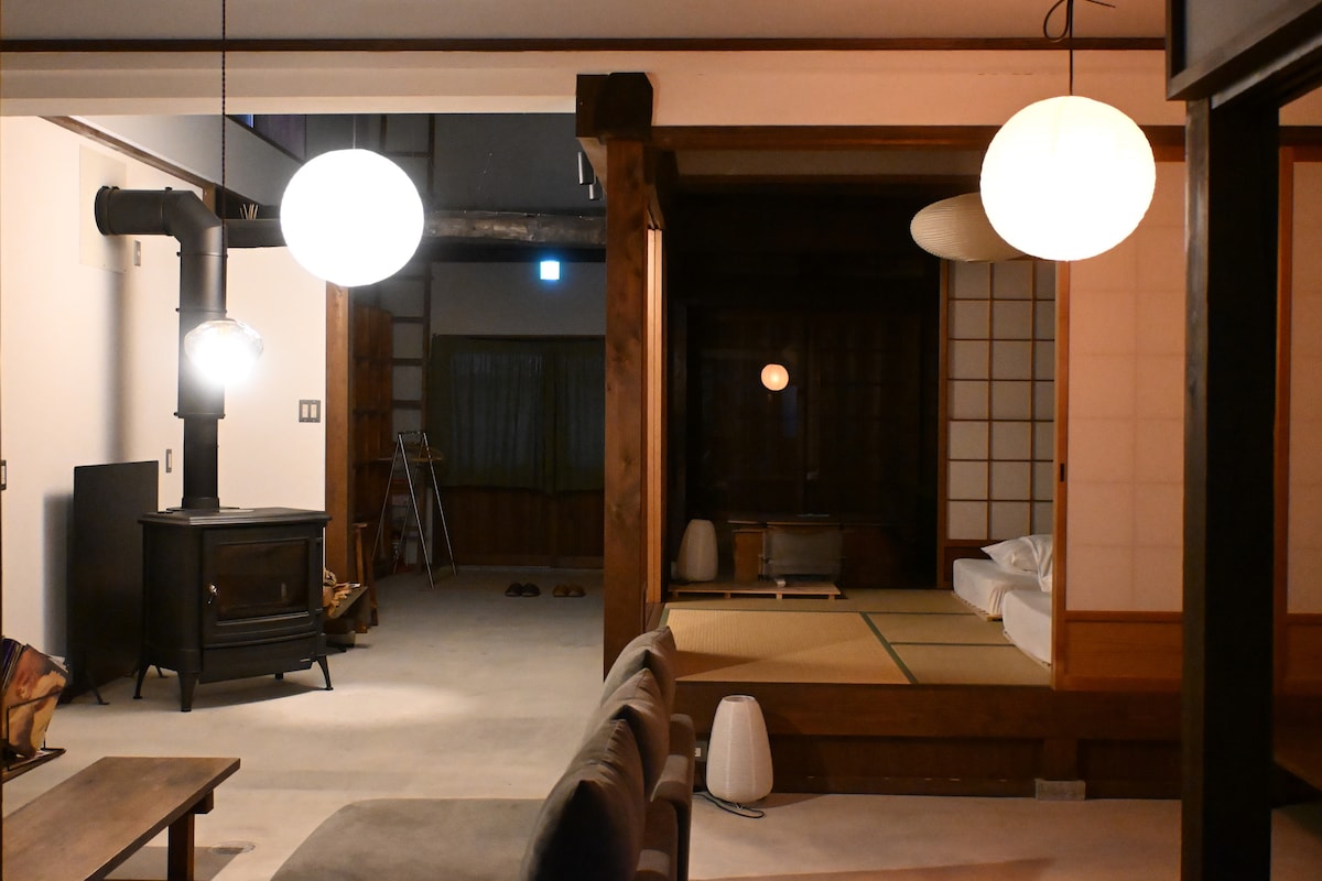 道の駅 神戸フルーツ・フラワーパーク大沢、三田プレミアムアウトレット、イオンモール神戸北から車で数分。 便利さと里山の静けさを両立した場所にある、築100年の古民家です。 寝室と浴室以外は、天井が高く開放感のある広々とした土間空間。 仲良し家族での滞在や、久しぶりに集まる仲間との語らいにぴったりです。 🌿 古民家ならではの心地よさ • 夏は風が通り、エアコンに頼りすぎず涼しく過ごせます • 冬は薪ストーブ+大型灯油ストーブでしっかり暖か • エアコン/扇風機/サーキュレーター完備で一年中快適 🔥 BBQ・だんらんを楽しむ お庭でBBQが楽しめます。 BBQ台・トング・炭・カトラリー・食器類はこちらでご用意しています。 ※食材・調味料のみお持ちください ※BBQのご利用は 22時まで でお願いします ※使用後の食器は洗っていただくようお願いします 🐶 わんちゃんも一緒に宿泊OK 大切な家族の一員であるわんちゃんもご一緒にどうぞ。 (オプション料金:一律3,000円)