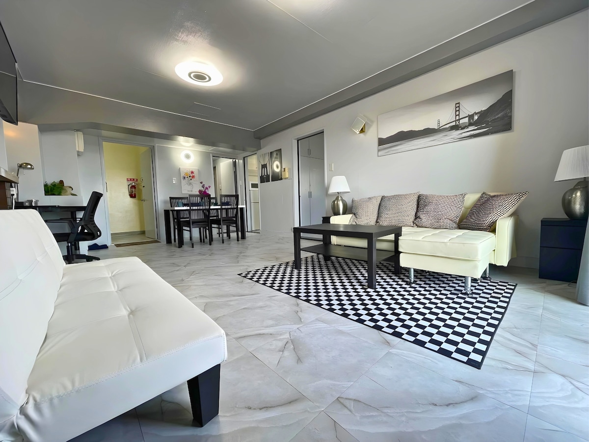 サンライズハワイ101,ハワイ風デザイン、駅近、難波駅まで電車10分、広い部屋、出張も旅行も是非