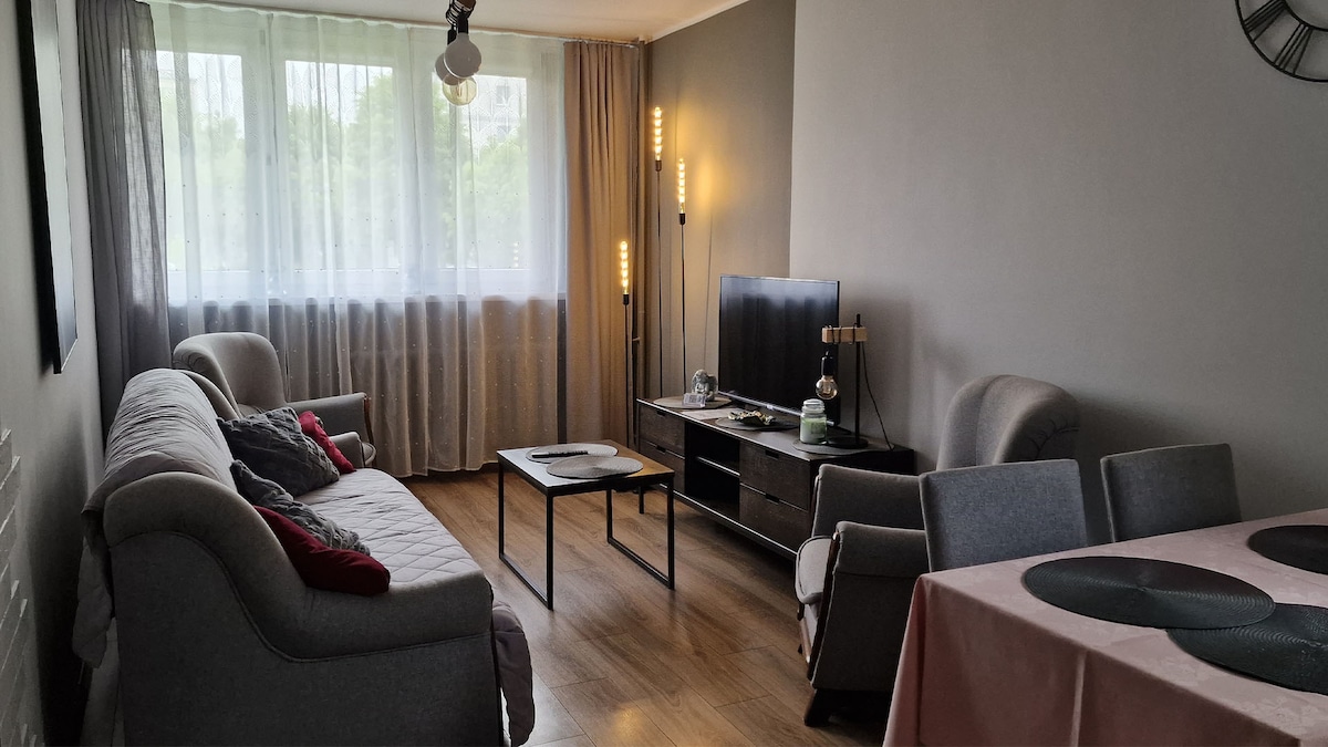 Tražite savršen smještaj? Nudimo moderan stan u novom bloku koji kombinuje eleganciju, funkcionalnost i maksimalnu udobnost. Dobro uređen prostor, potpuno opremljen( mašina za pranje veša, mašina za suđe, pametni TV) i visokokvalitetni madraci za zdrav i okrepljujući san. Jedna od najvećih prednosti ovog stana je vrijeme dolaska do 16:00. Stan u sigurnom i mirnom okruženju. Prodavnica Lewiatan u blizini, 4 km do željezničke stanice Radujemo se vašoj posjeti!