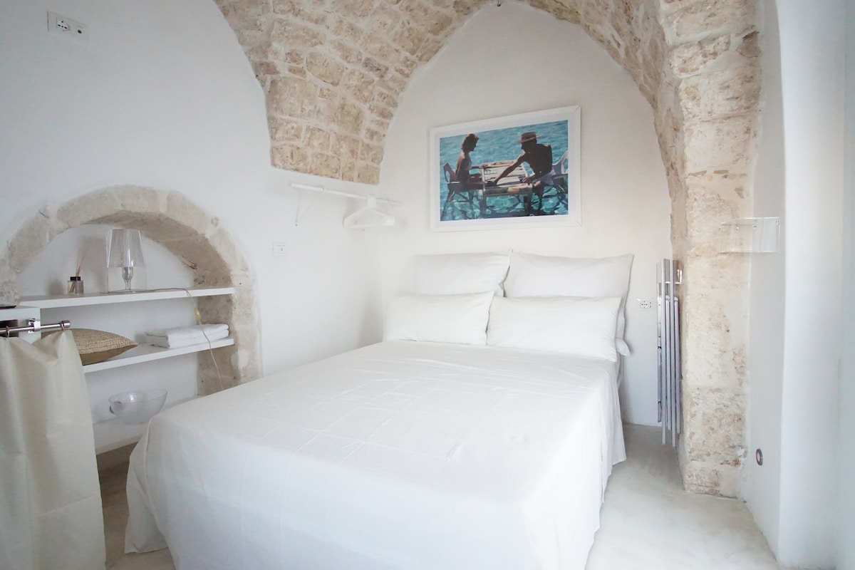 CIS: BR07401291000000188 NIN: IT074012B400033730 Doživite čaroban osjećaj boravka između prošlosti i sadašnjosti - to je historijski dom! Starinski podovi i kameni zidovi su pozadina okruženja opremljenog dizajnerskim predmetima, starom keramikom i lokalnim namještajem. Velika privatna terasa, sa solarijem i vrućim tušem, će vas oduševiti: možete se opustiti uz čašu vina u sumrak, uživati na suncu na udobnim ležaljkama ili pripremiti večeru u čarobnoj apulijskoj atmosferi.