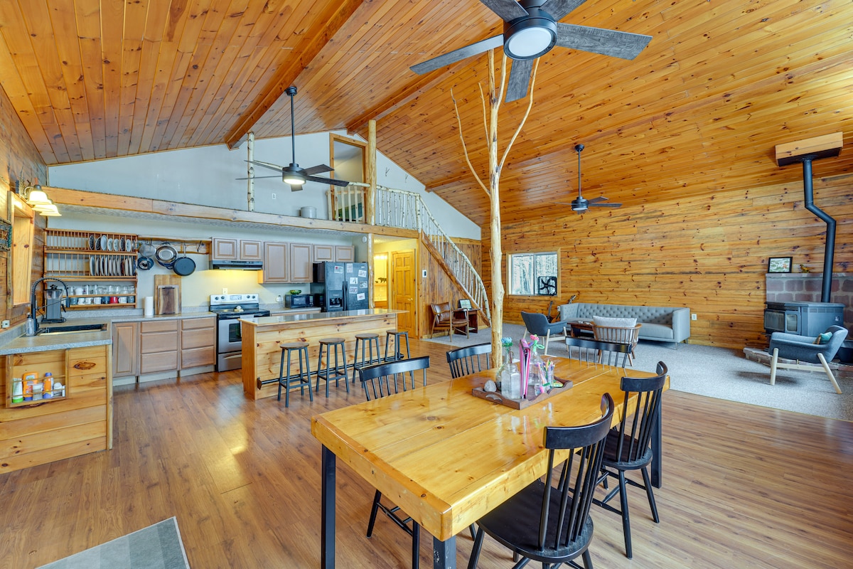Naš planinski dom oduzima dah! Mirno je, spokojno, a pogledi su zaista nešto u šta morate vjerovati. U blizini se nalaze beskrajne pješačke staze, odlična mjesta za ribolov, a imamo čak i pristup prekrasnom Star Lakeu, udaljenom 15 minuta. Vozite. Slobodno povedite svoj brod. To je savršen odmor za opuštanje, bilo da čitate knjigu, uživate u ugodnoj vatri ili jednostavno uživate u mirnoj ljepoti oko sebe. Ako žudite za mirnim bijegom od svakodnevne gužve.