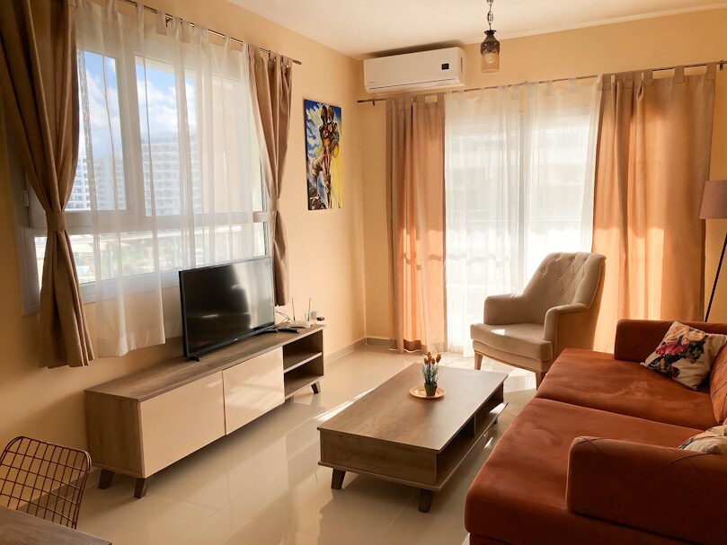 Our fully equipped apartment will provide you with everything you need for your perfect holiday. Our apartment is located on the 4th floor of Rufus Apartment. Sea and pool view. The whole apartment includes an electrical product package that will provide you with your home cooking. A perfect place for families and especially for kids A place full of animated water slides, game room, climbing wall, Xbox and PS game room with 9 pools, Jacuzzi, sauna, 3 Restaurants, Bakery, Supermarket, 2 Bars...