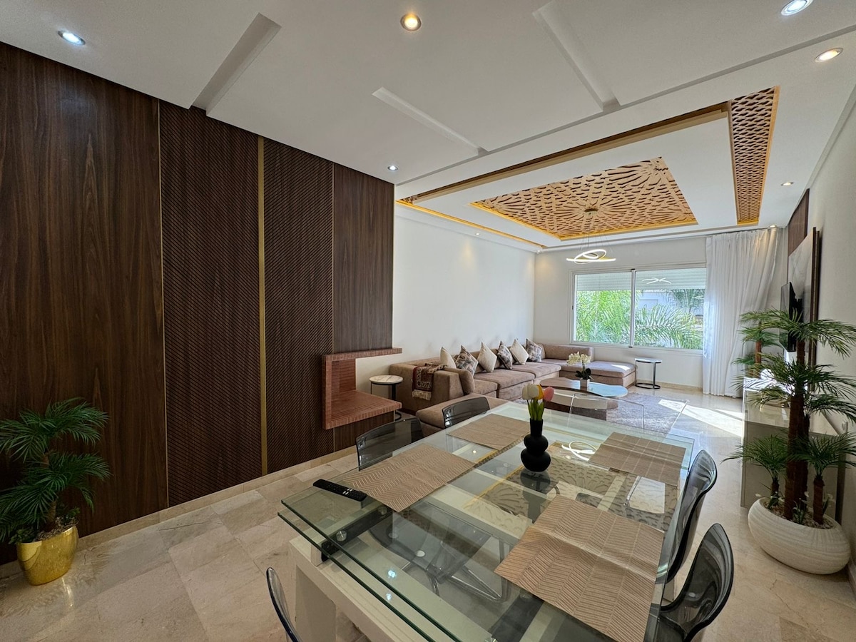 Novi miran stan koji se nalazi u blizini Victorije u Bouskouri, na šestom spratu sa vrhunskom terasom od 30 metara 2 . Jugozapadna orijentacija. Sjajan zalazak sunca je zagarantovan. Stan je : - 20 minuta vožnje od aerodroma Casablanca Mohamed 5 - U blizini svih prodavnica, apoteka, pekarnica (5 minuta hoda) - 25 minuta vožnje do centra Casablance. - U blizini zelenog grada Bouskoura (5 minuta vožnje)