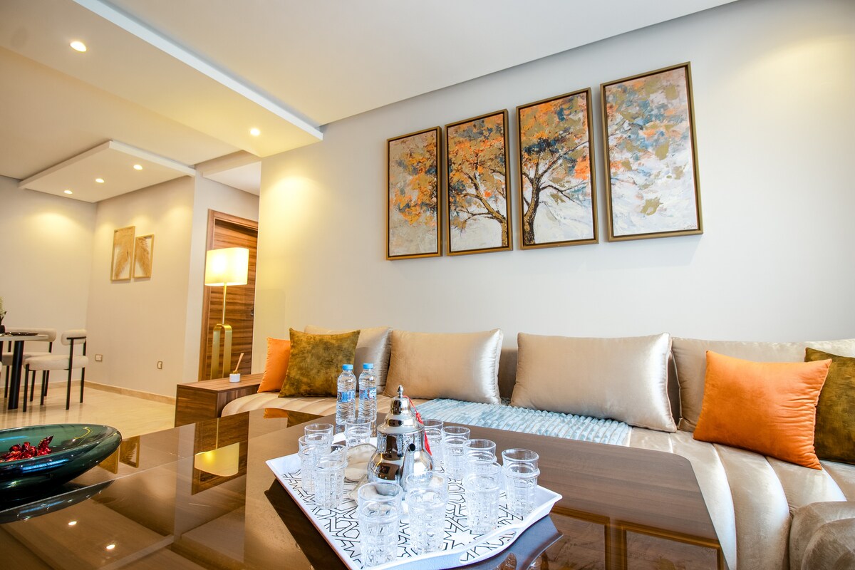 Strategic location: 5 minutes from Mohammed V Airport and 15 minutes from Casablanca. • Modern space, ideal for a pleasant stay. • Fully equipped studio. • Central air conditioning for optimal comfort in all seasons. • Access to a swimming pool for relaxation. • High-speed Wi-Fi. • Quiet and secure stay, suitable for travelers and professionals.