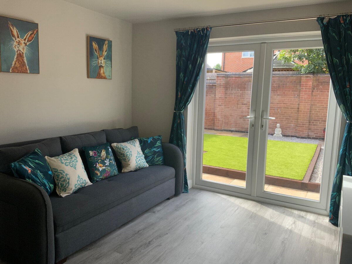 Stylish 2-bedroom home in Ashby-de-la-Zouch, perfect for families, friends, or business trips. Just a short walk to shops, dining, traditional pubs, and the historic Ashby Castle. Nearby attractions include Drayton Manor, Alton Towers, Conkers, Champneys Springs, N.E.C arena and the scenic National Forest. Conveniently close to major cities Birmingham, Nottingham, Derby & Leicester, with easy access to East Midlands & Birmingham airports. Features a garden, WiFi, Smart TVs, and driveway parking.