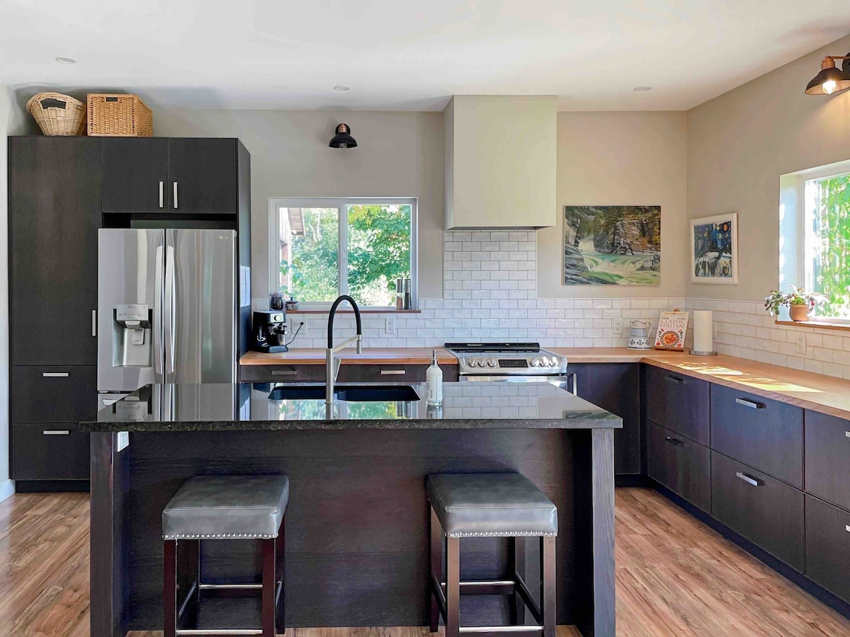 Opustite se u mirnom i elegantnom utočištu. Biciklizam, rijeke, okean, skijanje i planinarenje udaljeni su nekoliko minuta! Uživajte u privatnoj gostinjskoj kući poput parka na mirnoj cesti koja je udaljena od vreve i vreve. Bit ćete udaljeni 10 minuta od Courtenaya ili baze Mt. Washington u centralnom mjestu u prelijepoj dolini Comox. Za dan avantura, uputite se u Campbell River, Cumberland ili Comox. Pozdravite dobro jutro ljubaznom konju i poniju, Cam & Codyju dok uživate u jutarnjoj kafi na terasi.