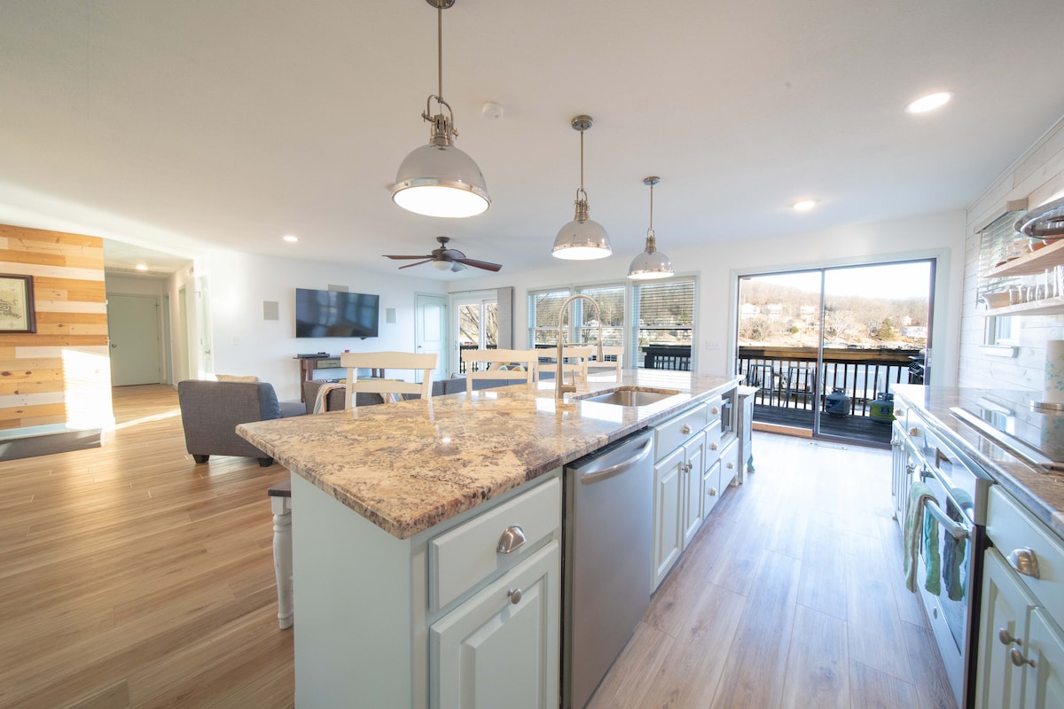 Historijski luksuz Eureka Springs, ostanite NA jezeru Table Rock pored mosta Little Golden Gate! Kratka prekrasna 6 milja/14 minuta vožnje od centra grada Eureka Springs i Passion Play - ovo je potpuno luksuzno jezero 2 King Master spavaće sobe s 2 velika kupatila. Ogroman pogled od 180 stupnjeva na jezero i most će vas opustiti sa stilom dok gledate brodove kako prolaze. Dovršite profesionalno renoviranje iznutra i izvana 2022. godine. Brzi Wi-Fi. Posteljina od 600 prebrojavanja. Imamo i druge nove 7 i 2-krevetne jedinice ako je potrebno.