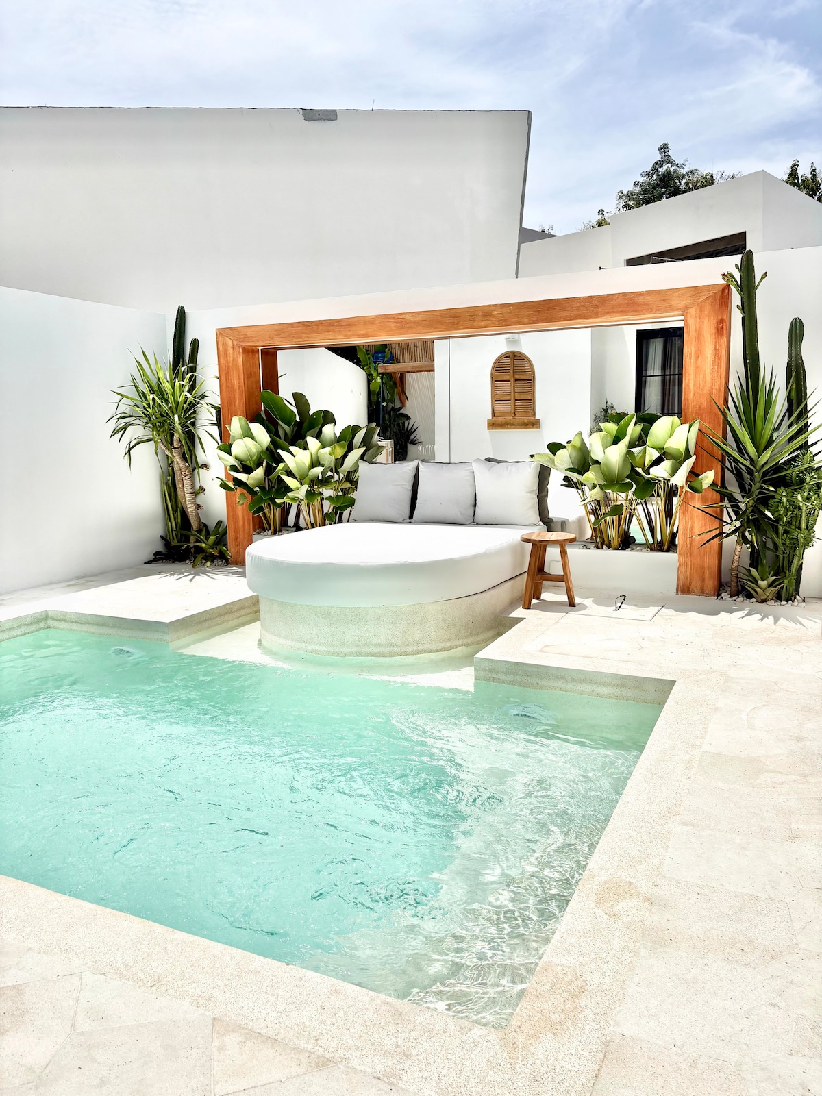 A beautifully designed private villa featuring a tranquil pool courtyard, sunken outdoor daybed, stylish open-plan living, and seamless indoor–outdoor flow. Perfect for couples or a peaceful tropical escape. 🚧 Construction Notice Please note: There is ongoing construction in the surrounding area. While the villa itself remains private and fully functional, some intermittent noise may be heard during daytime hours. We sincerely apologize for any inconvenience and appreciate your understanding.