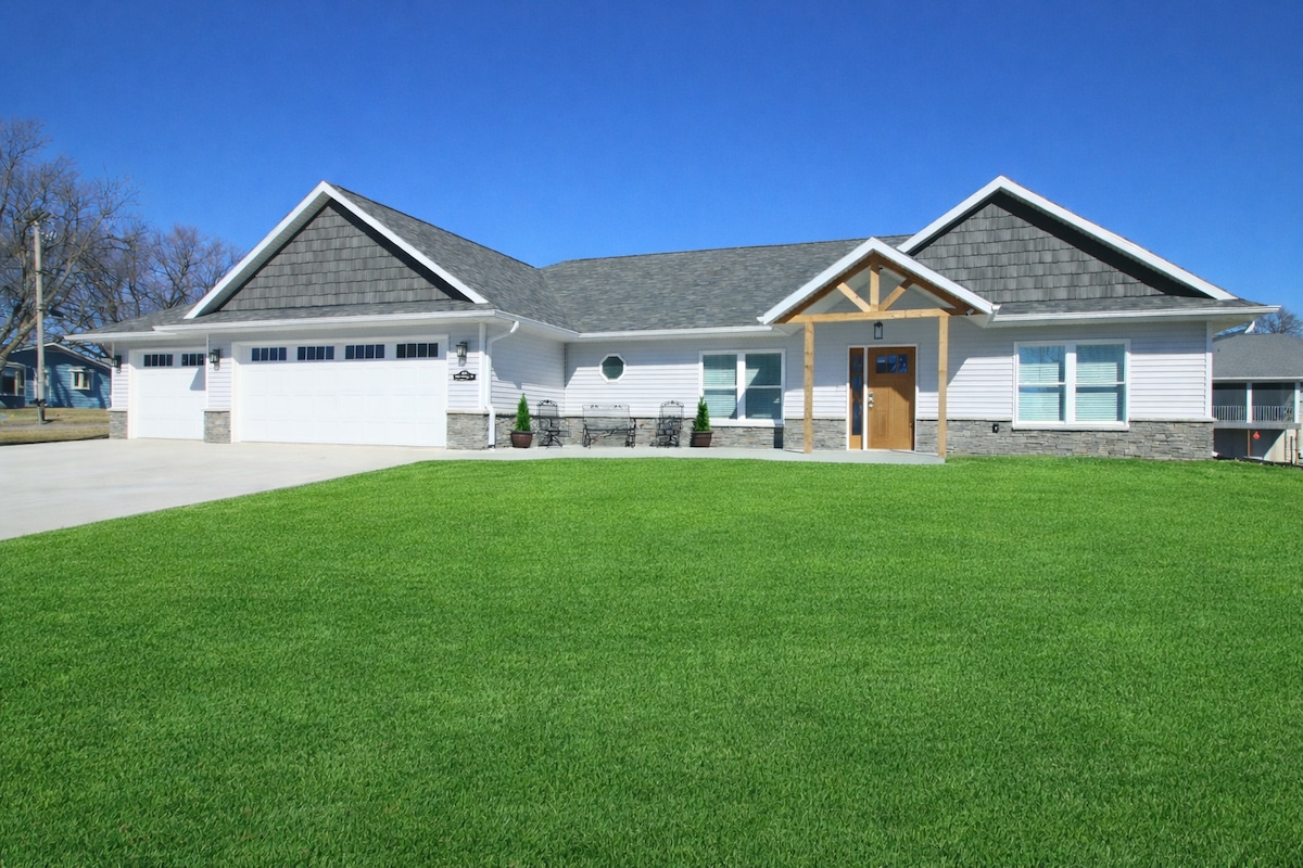 New home, Orange Street Retreat features king bed in the master w/soaking tub and large walk-in shower. Bedroom 2 & 3 provide queen beds. Fully stocked kitchen & coffee bar with K-cup, drip coffee maker, kettle, coffee and tea selection. You have options = -Movie night with the 65” Roku TV -Relax by the smokeless firepit -Enjoy the game room with air hockey, cornhole, and table games. Amenities include: Washer/dryer Microwave Dishwasher Hair dryers Charging Stations Cookware & dishes