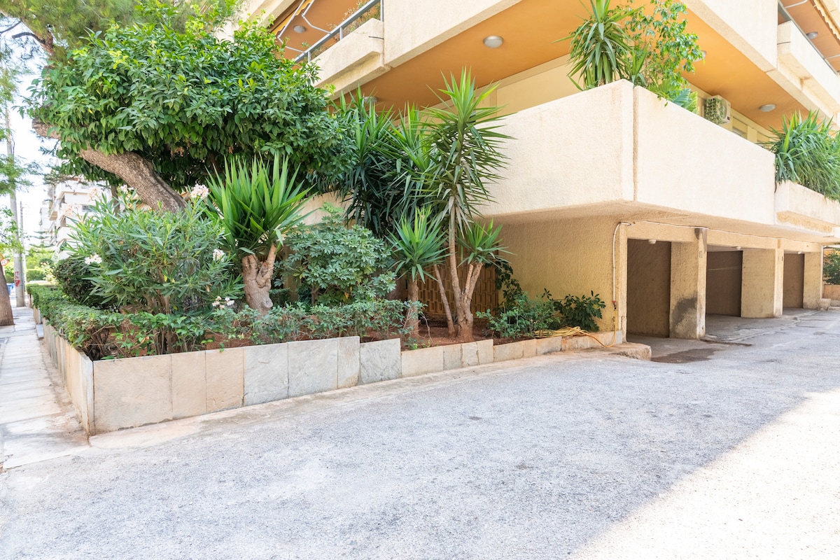 Ekskluzivni penthouse (8. sprat) stan površine 110 m2 s ogromnom verandom od 170 m2 s pogledom na more zaljeva Saronikos, ispred plaže Flisvos, pružajući potpuni osjećaj privatnosti. To je savršena kombinacija mora, neba i urbanog okruženja. Ima veliku dnevnu sobu i kuhinju sa stolom za 4 osobe koje okružuju staklena vrata verande za neometan pogled. Ima veliku spavaću sobu, zapravo dvije normalne spavaće sobe u jednoj, s teretanom, klupom, utezima, otiračem, uredskim stolom i 2 ormara.